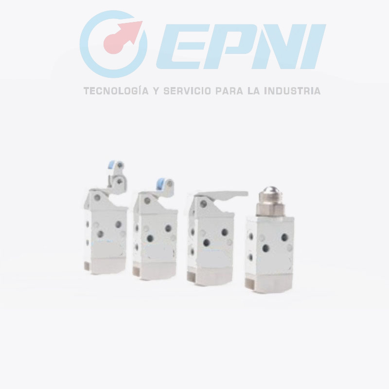 - Tipo: Válvulas 3/2 de actuación manual o mecánica, reacción por resorte. Puede conectarse como normal abierta o normal cerrada, o como selector